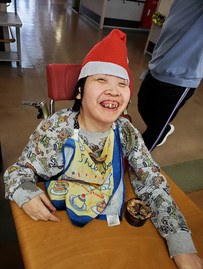 職員も利用者のみなさんもサンタ帽を身に付けて、